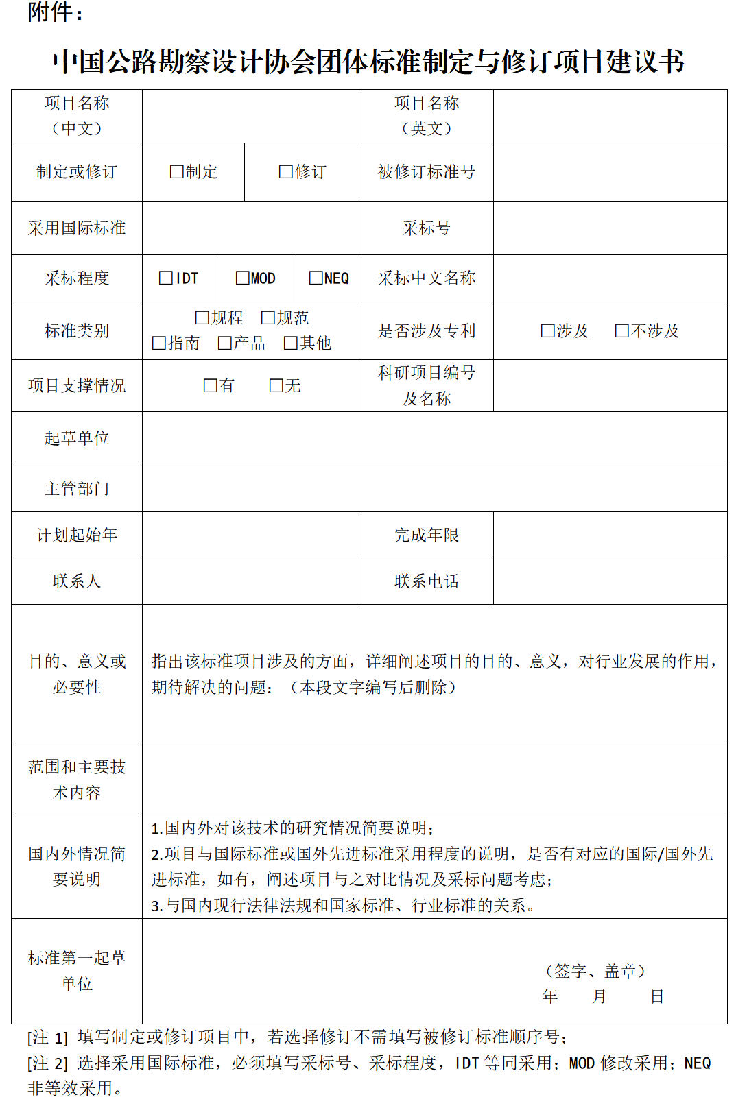 附件:《中國公路勘察設計協會團體標準制定與修訂項目建議書》