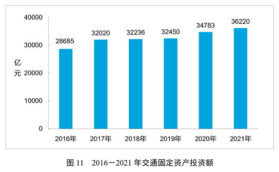 全年完成交通固定資產(chǎn)投資36220億元,比上年增長(zhǎng)4.1%。