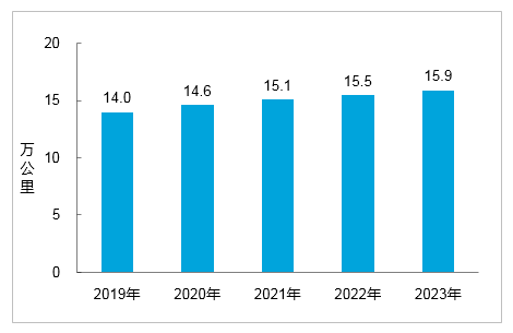 圖1? 2019-2023年年末全國(guó)鐵路營(yíng)業(yè)里程